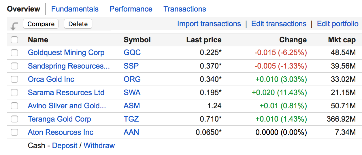 As we speak, I’m most interested in adding more shares of: Orca Gold, GoldQuest Mining, and Teranga Gold (TGZ.TO/TGZ.AX/TGCDF). To a lesser degree, I’m keeping tabs on Avino Silver and Gold Mines (ASM), as anytime I can get into shares of a company at a price significantly below the last private placement offering ($1.57/share), it really don’t get much better than that! The same could be said for Teranga Gold (C$1.05/share), actually… But at this point in time, I really don’t know enough about Avino to initiate a position just yet… I’ve got to do a lot more research…