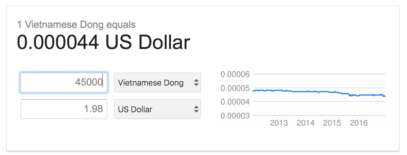 Yes, it’s going to take me awhile to get used to the conversion rate from Vietnamese Dong to US Dollar…