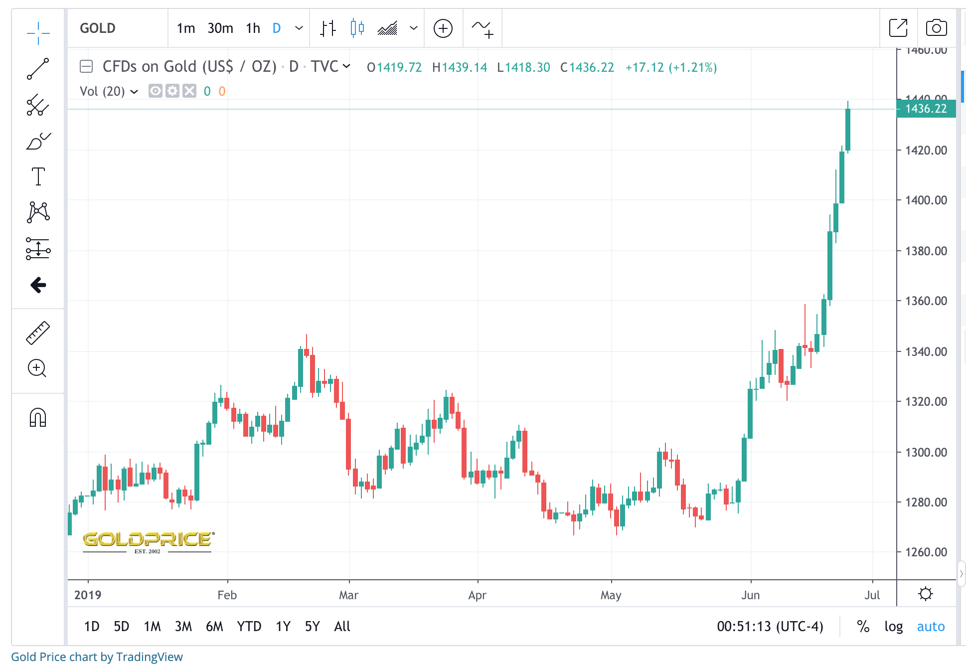 Gold Holding Up Over $1,400/oz (June 29, 2019)