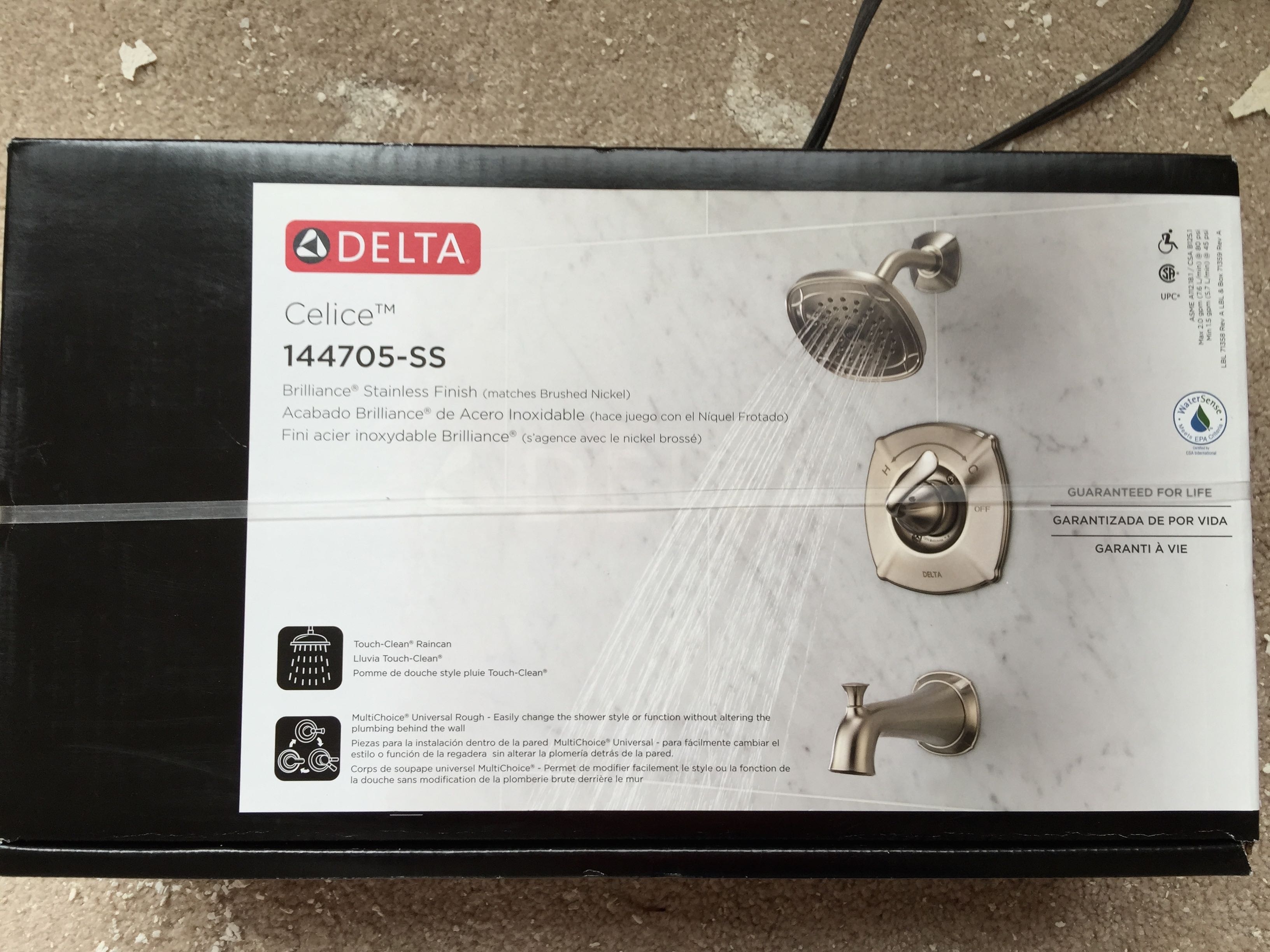 Here’s the shower set that I picked up on-sale. I like the brushed nickel look, although this one is called Brilliance Stainless Finish, which is suppose to match brushed nickel. Close enough.