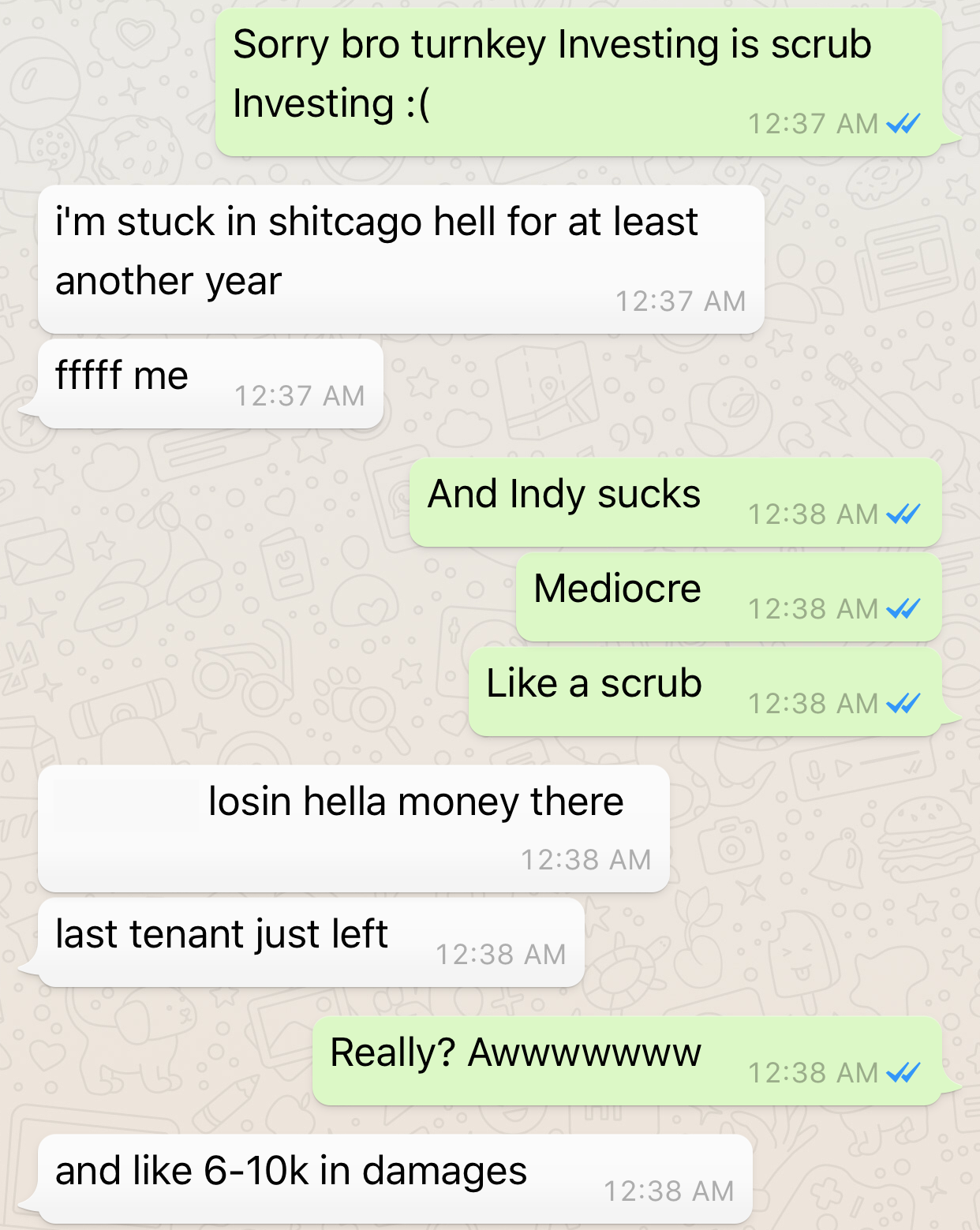 It’s been a few years now since I screwed up MASSIVELY going the out-of-state/turnkey/cash flow route, and here are just some datapoints I want to share with you all.