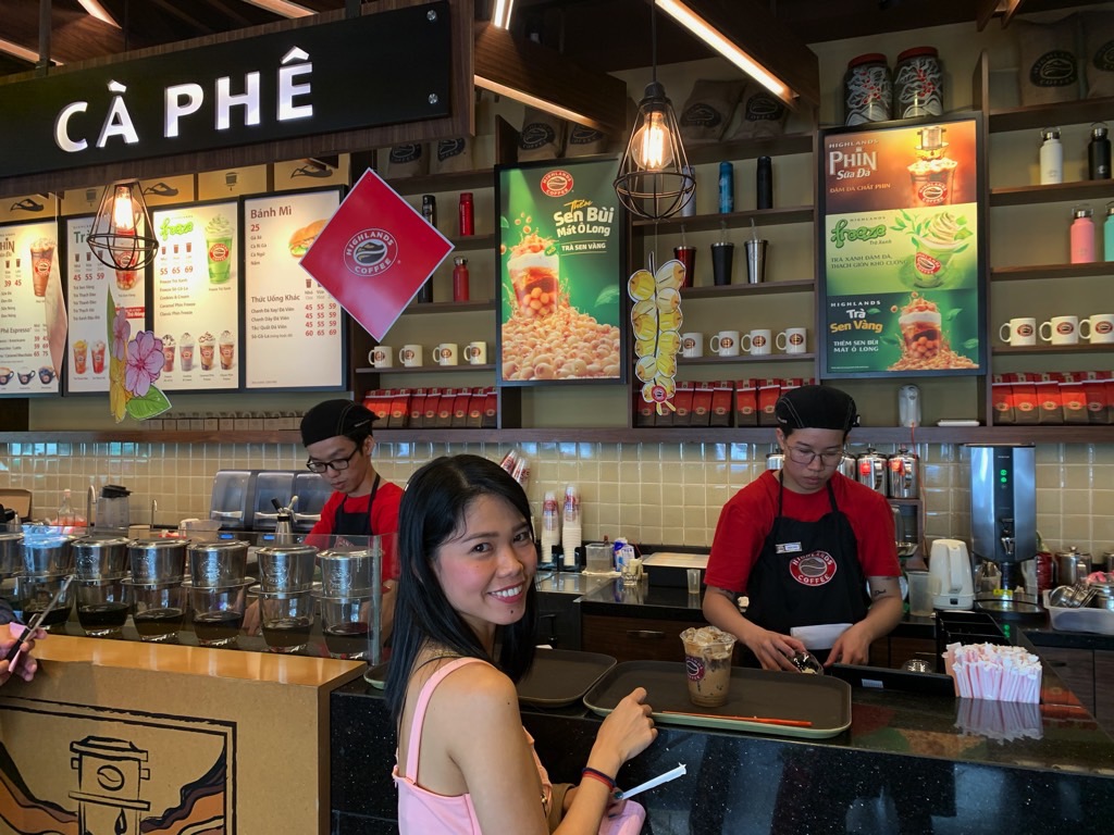 As it pertains to beverages, in Vietnam, it’s all about Ca phe sua da (Vietnamese iced coffee). At a popular shop like Highlands Coffee, this will set you back around 45,000 VND for a large order (~$1.94 USD/large).