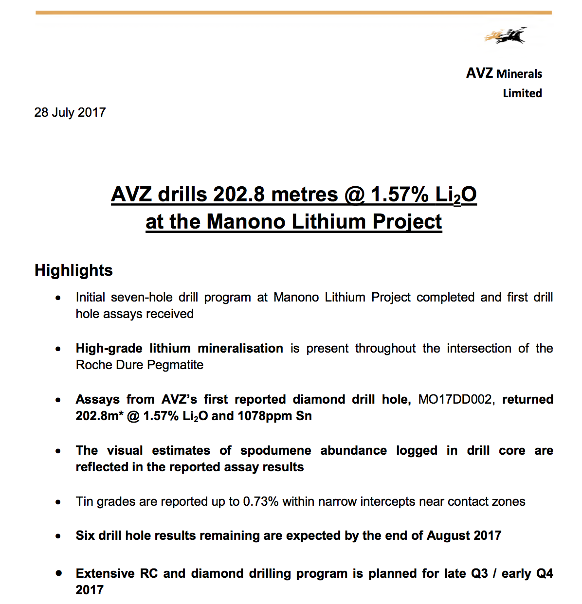 This was on the heels of some very positive news, the assay results of the first drill hole at the company’s most prospective Manono Lithium-Tin project, located in the Democratic Republic of Congo, were released earlier than expected to market.