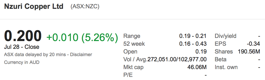 Finally, Nzuri Copper (NZC.AX) is starting to get some love from the market.