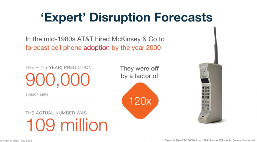 Graphic 1: Technological Disruptions are ALWAYS underestimated by “experts” and “analysts” by a country mile…