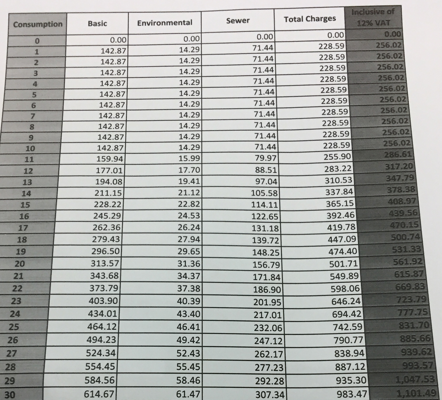 You can pretty much use all the water that you want for less than 300 PHP/month (~$5.89 USD/month).