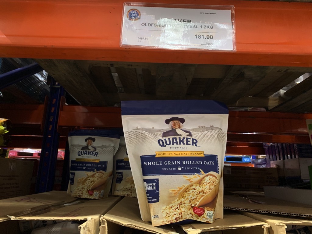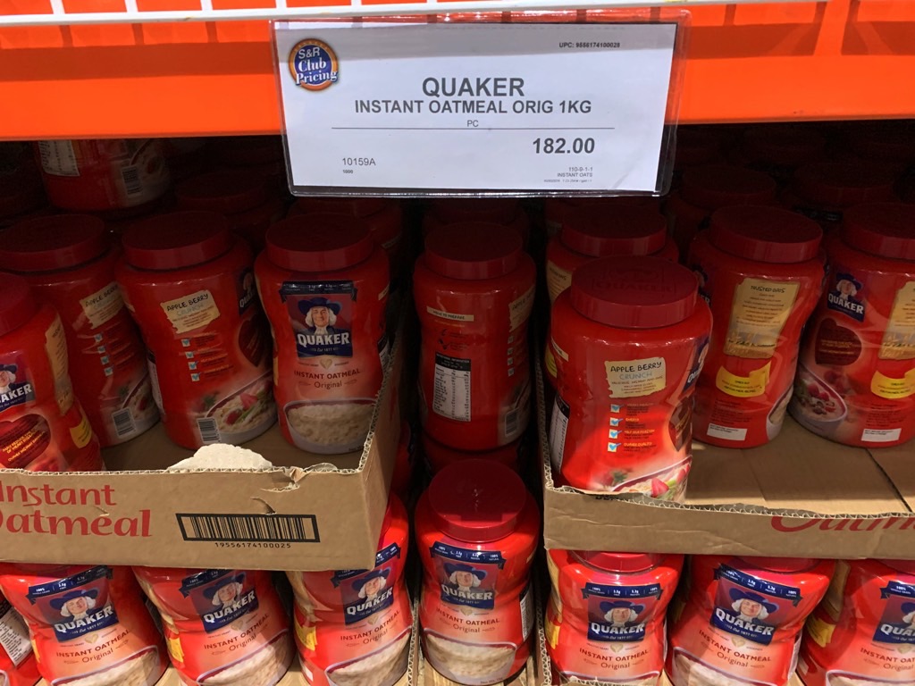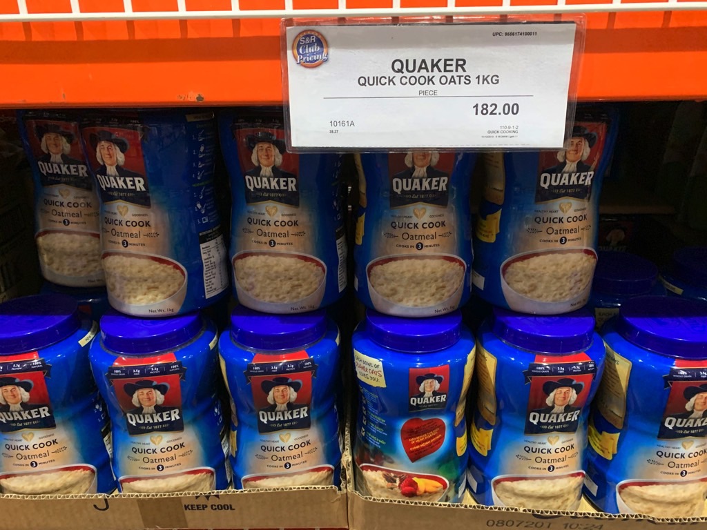 Which sets me back 182 PHP (~$3.58 USD) for 1 kilo of Quaker Quick Cook Oatmeal.