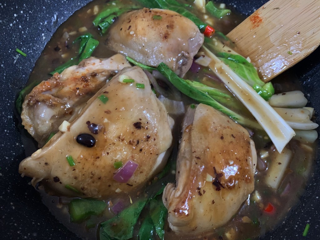 A typical dinner I like to cook, served with rice.