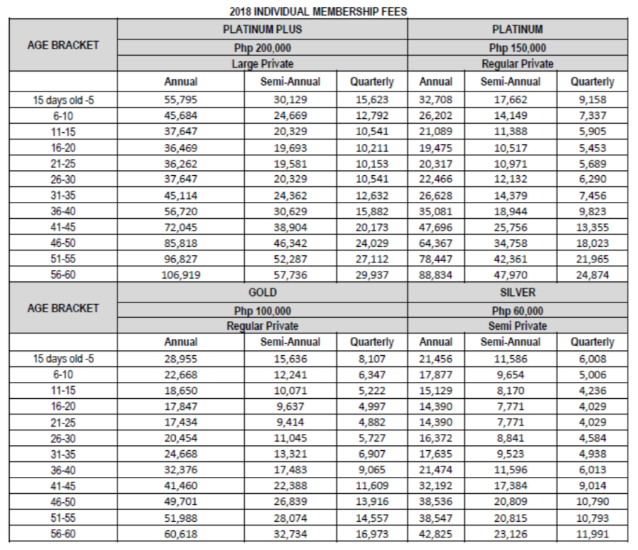 Going with the Platinum membership (Maximum Benefit Limit of 150,000 PHP; ~$2,946 USD), for my age bracket, this comes out to 26,628 PHP/year (~$524 USD/year or ~$44/month), if you pay a lump sum installment for the entire year.