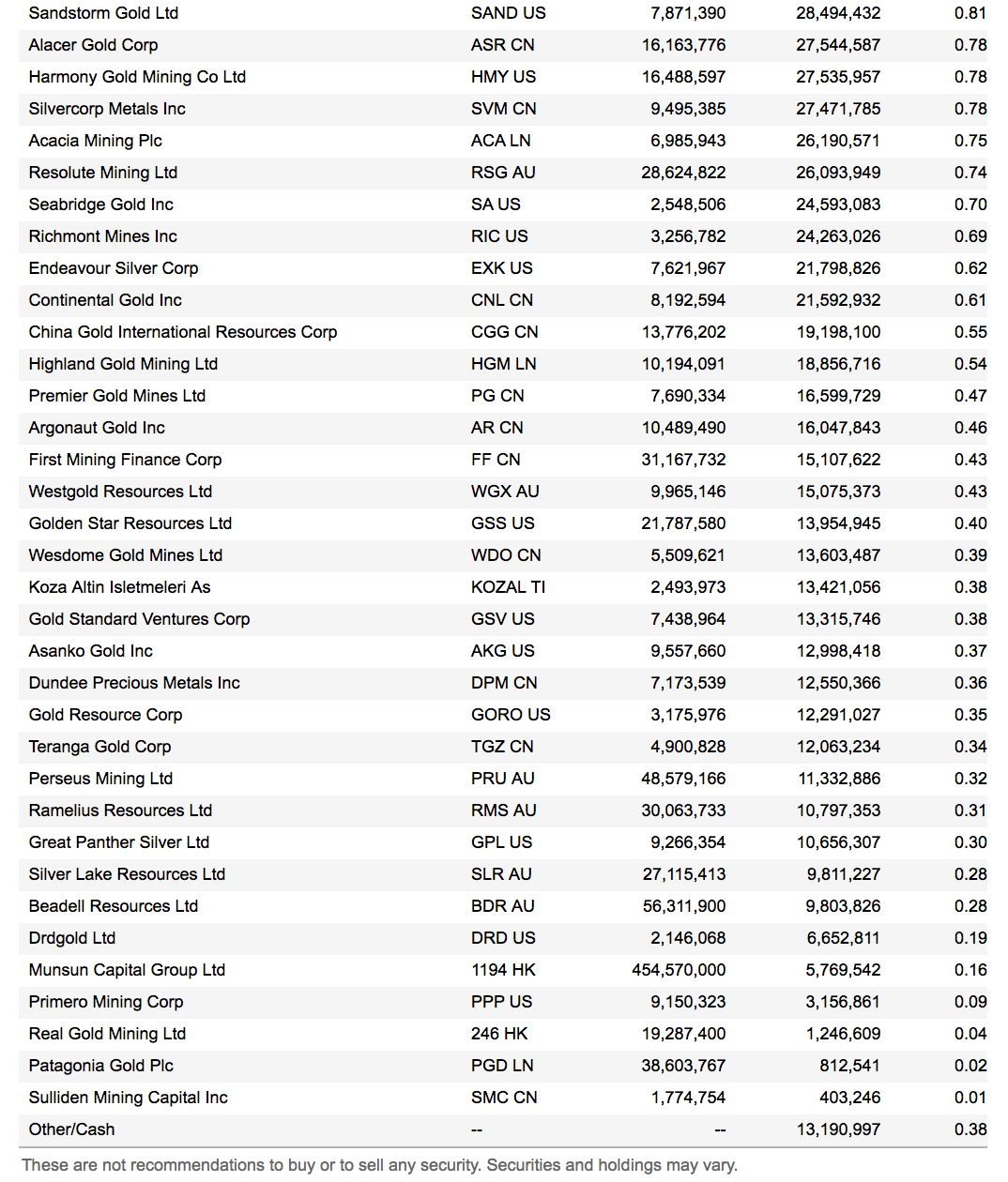 In the last update, I posted the high volume trading session we all saw from the GDXJ rebalancing act from last Friday. Despite the obvious, the transactions weren’t yet settled and we didn’t get to see the new holdings/allocation updated on the VanEck website.
