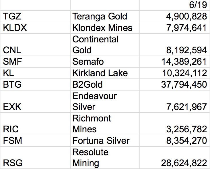 Well, after market close today (6/19/17), GDXJ has now got this new list out for ya’ll.