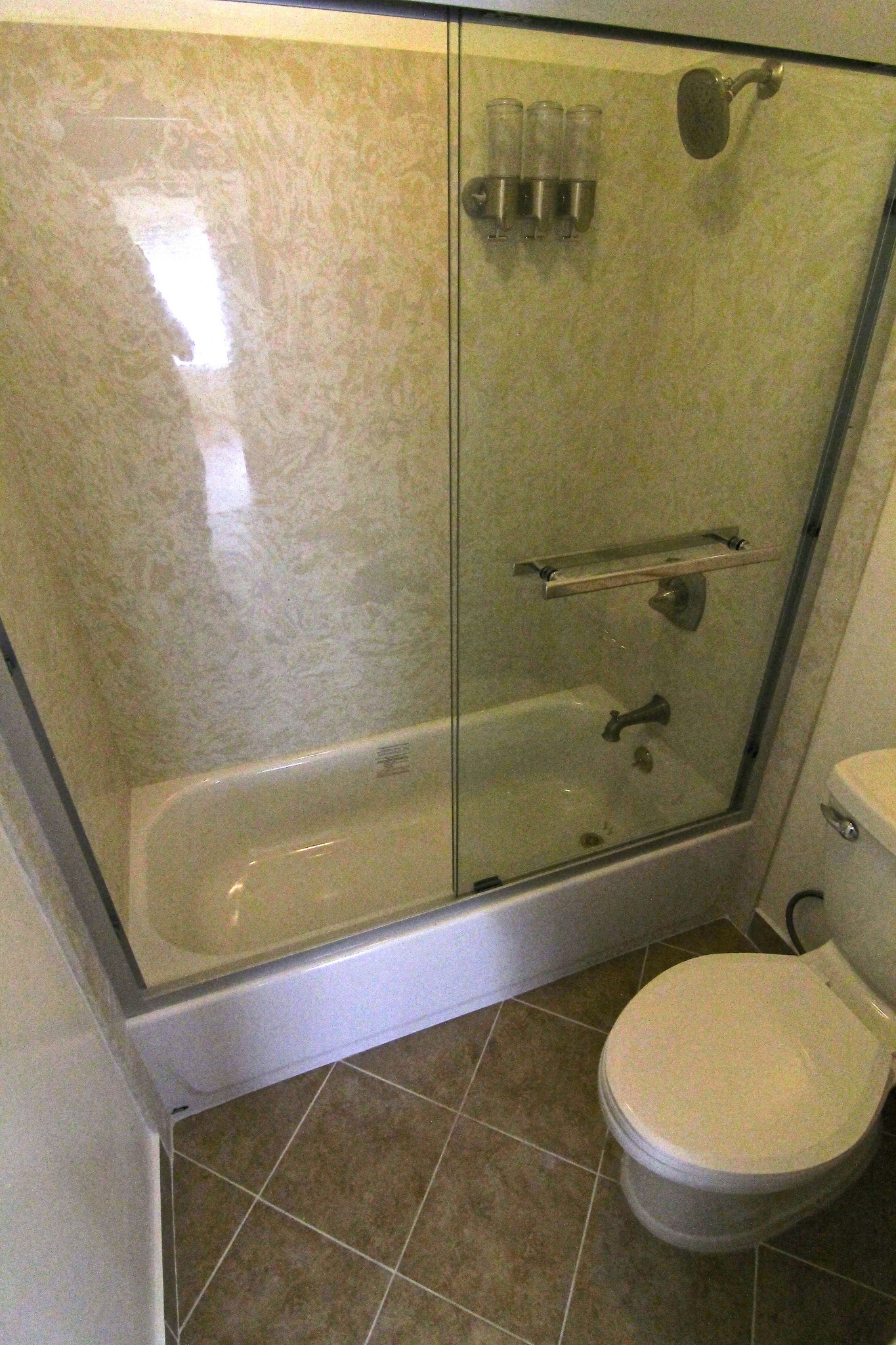 - Re-do master bathroom. Replace tile, toilet, tub, vanity, mirror, medicine cabinets, ceiling fan, etc. Install sliding door and 3 piece quartz set for shower.