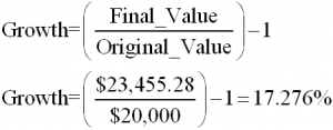 After 20 long years, our account has grown from $20,000 to $23,455.28. At 0.8% annual yield, the final % growth is: