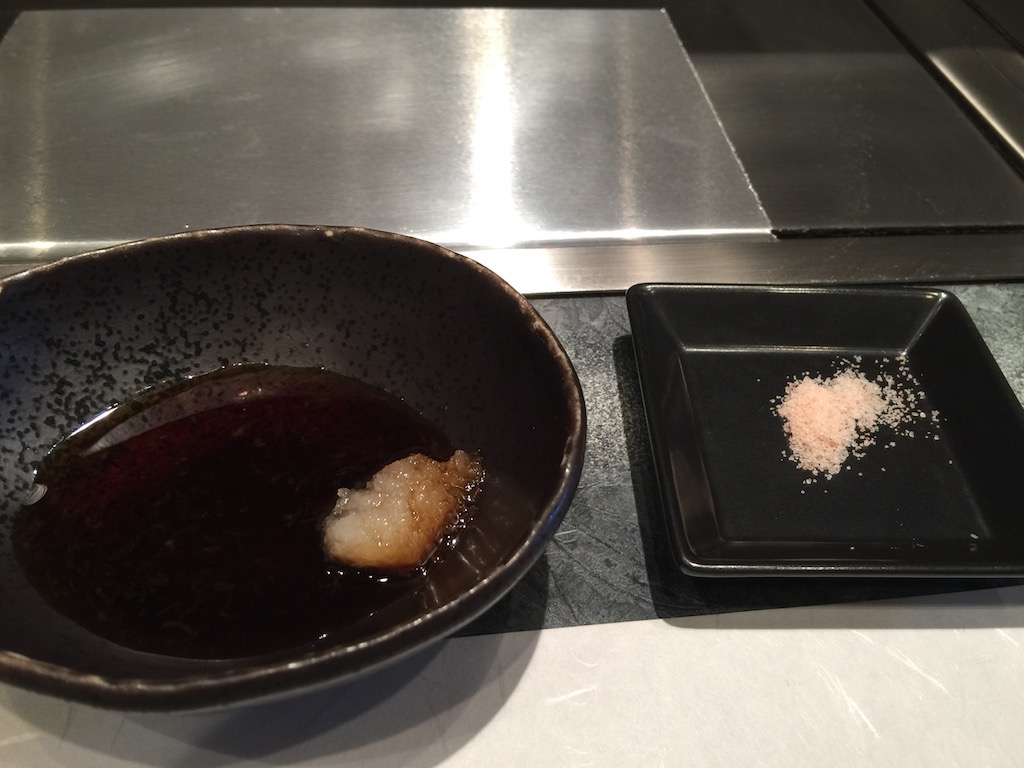 Getting ready for the REAL KOBE BEEF experience! Rose salt served alongside the house special Japanese dipping sauce… That’s all you need to add for “flavor enhancing”.