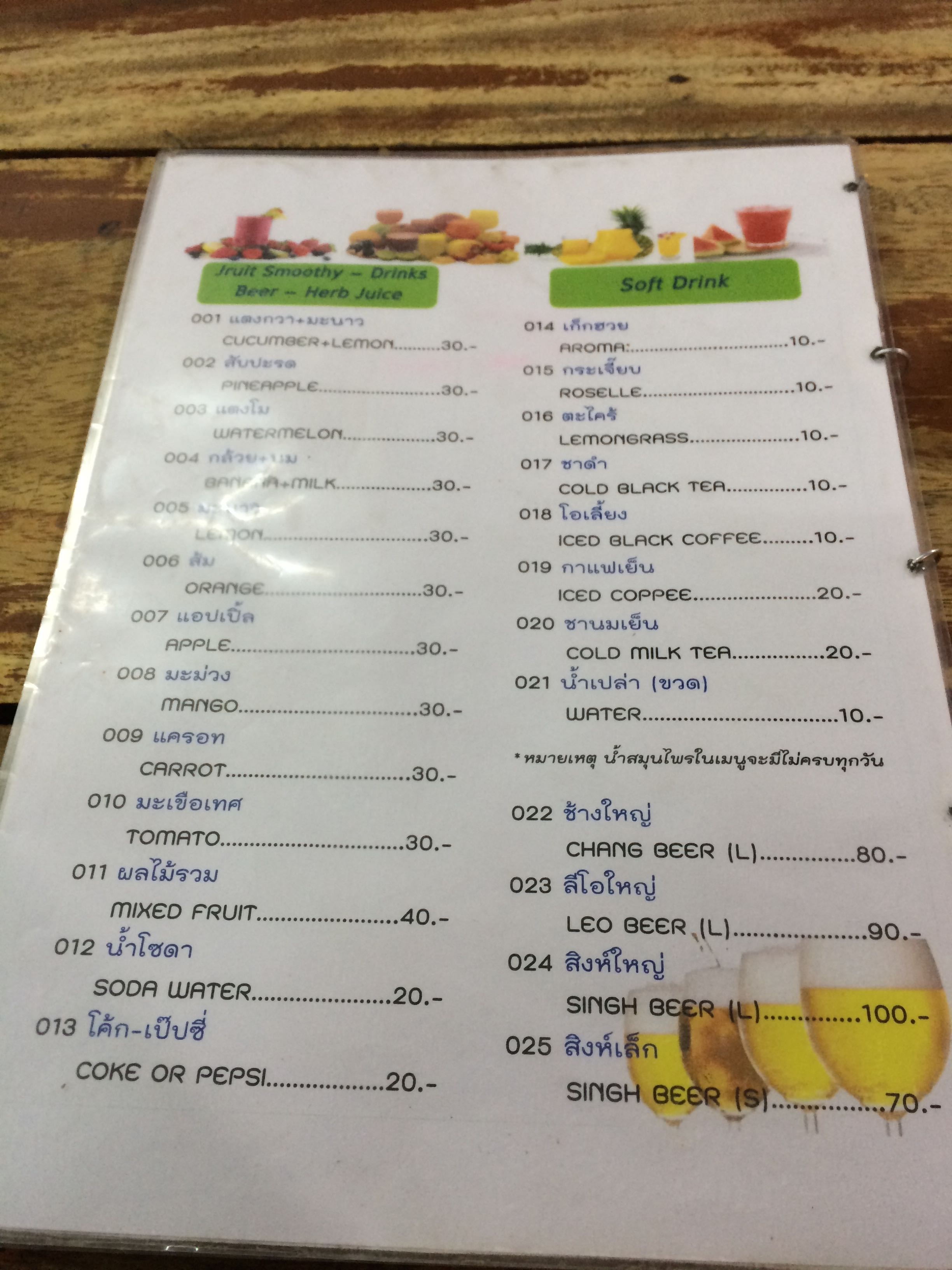 I ordered some shrimp fried rice for 50 baht ($1.54) and a mango smoothie for 30 baht ($0.92).